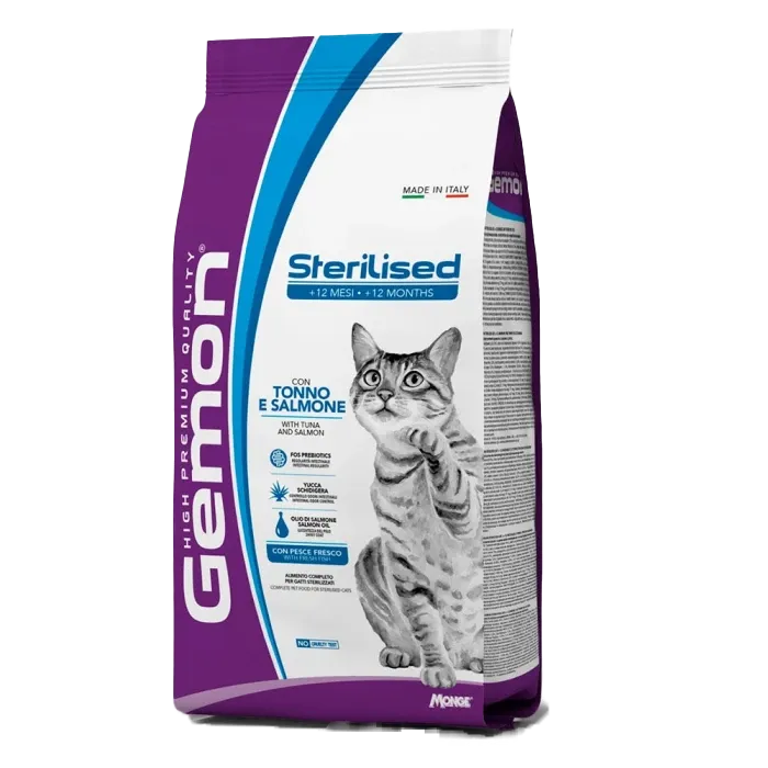 El Gemon Esterilizado está formulado para gatos adultos que han sido esterilizados, una etapa que requiere cuidados especiales en su alimentación. Esta línea de Gemon High Premium Quality combina ingredientes de alta calidad con una fórmula adaptada para mantener el bienestar general del gato.