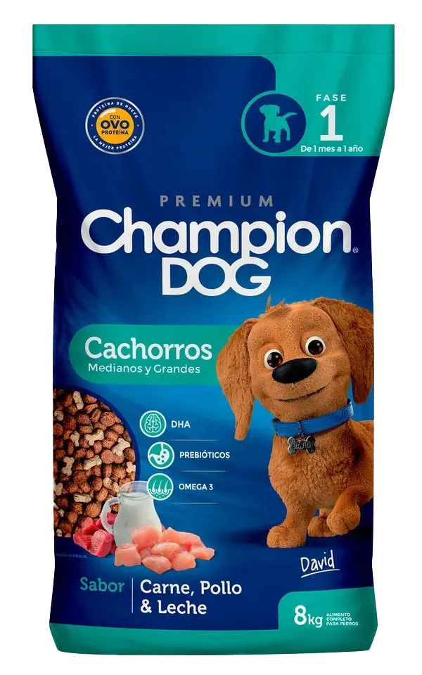 Con Champion Dog Cachorro, tu perro recibe más que alimento: disfruta de una dieta que le brinda salud, energía y felicidad en su etapa más importante de crecimiento.